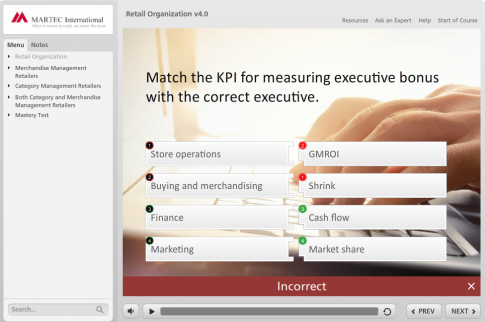 A user of one of our training programs contacted us with a question. He took the mastery test and challenged the answers that came up in the question shown above. He thought that Store Operations should own GMROI and the Buying Division should own shrink.